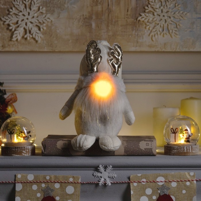 Светодиодная фигура «Гном белый» 20 × 24 × 10 см, текстиль, батарейки AG10х3 (в комплекте), свечение тёплое белое