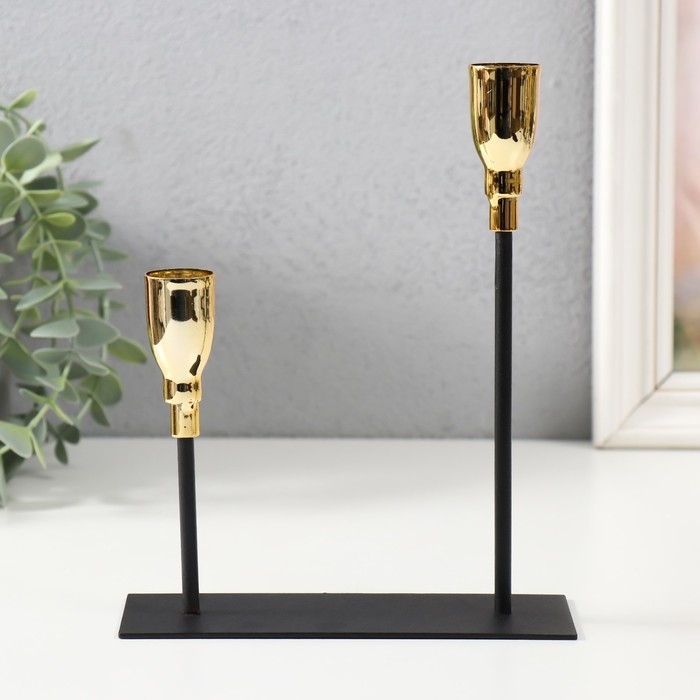 Подсвечник металл на 2 свечи "Ахиллес" чёрный с золотом 15,5х6х18,5 см