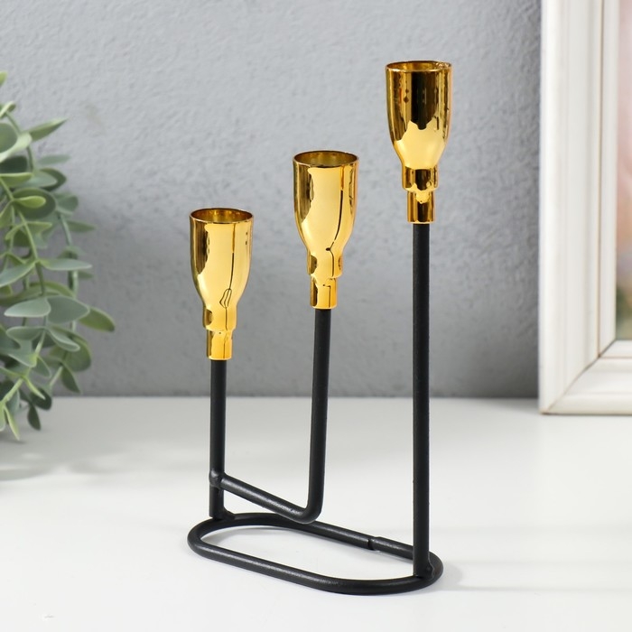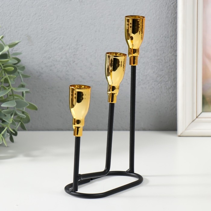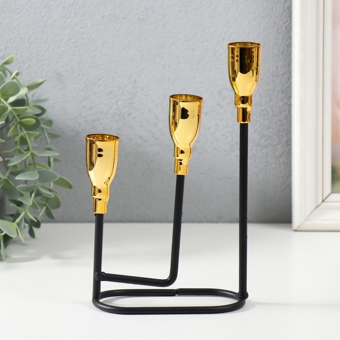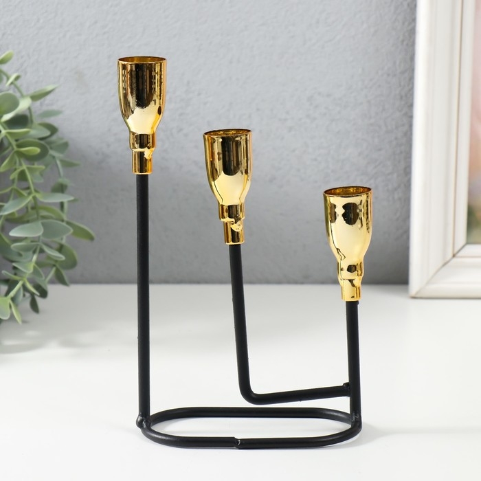 Подсвечник металл на 3 свечи "Афина" чёрный с золотом 13х5,8х22,2 см