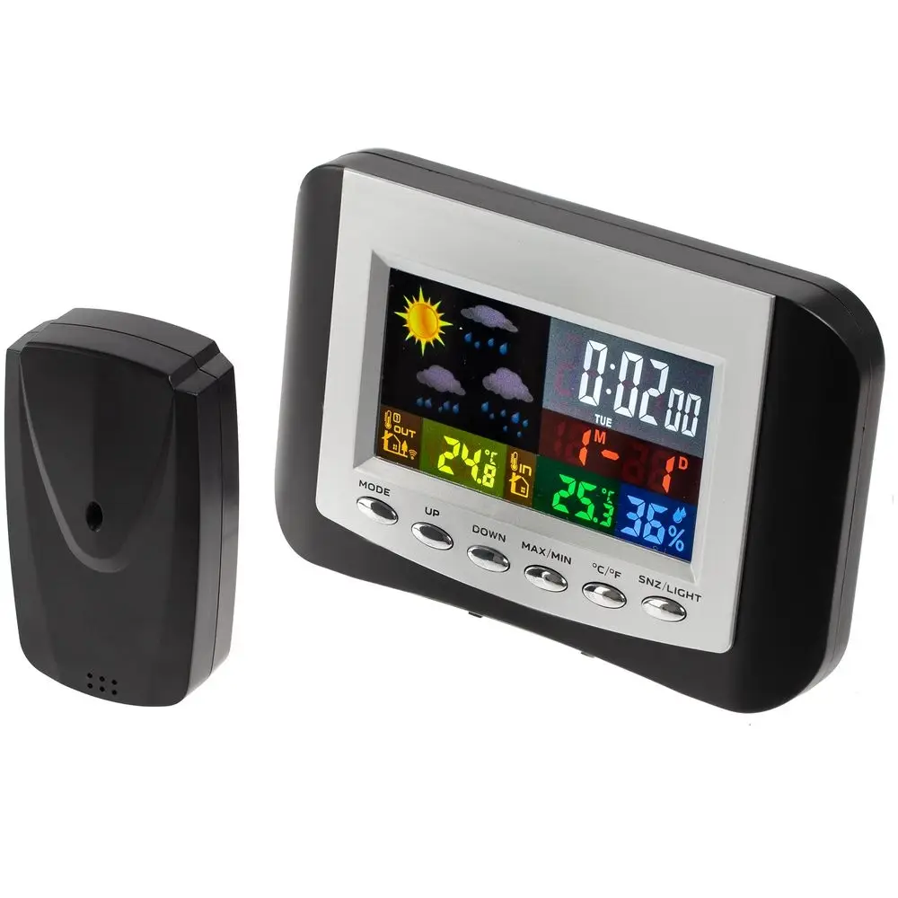 Метеостанция с цветным дисплеем и выносным датчиком точно покажет погоду в доме и за окном.