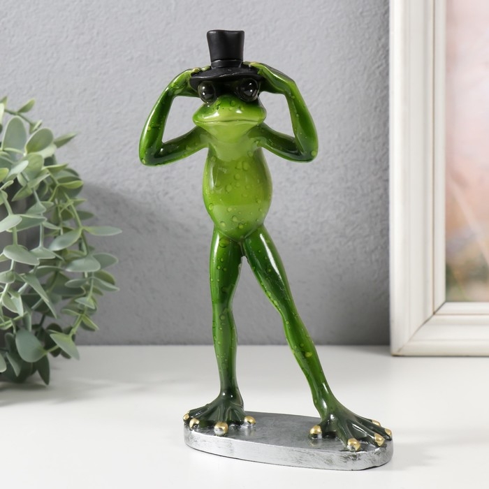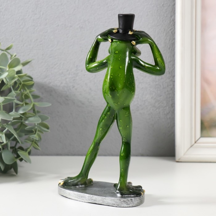 Сувенир полистоун лак "Лягуха в цилиндре" 12,3х6,5х20,3 см