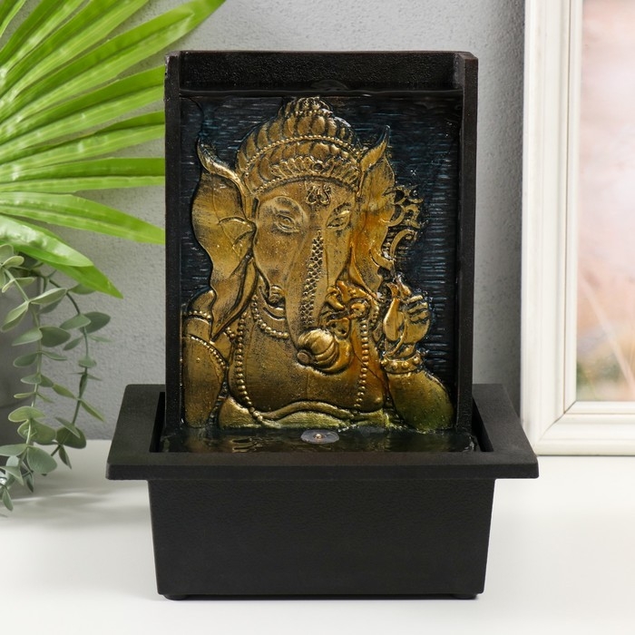 Фонтан настольный от сети, подсветка "Портрет Ганеша с цветком руке " 21х17х27 см