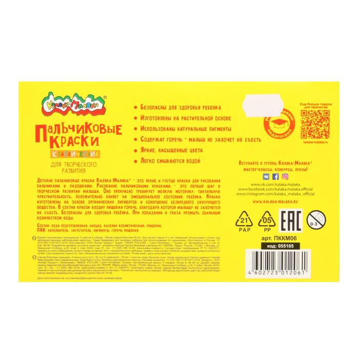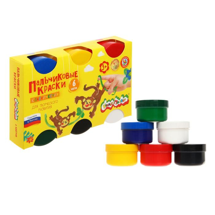 Краски пальчиковые, набор 6 цветов х 60 мл, "Каляка-Маляка"