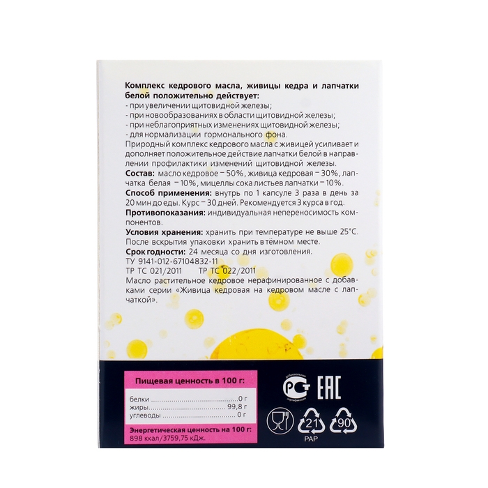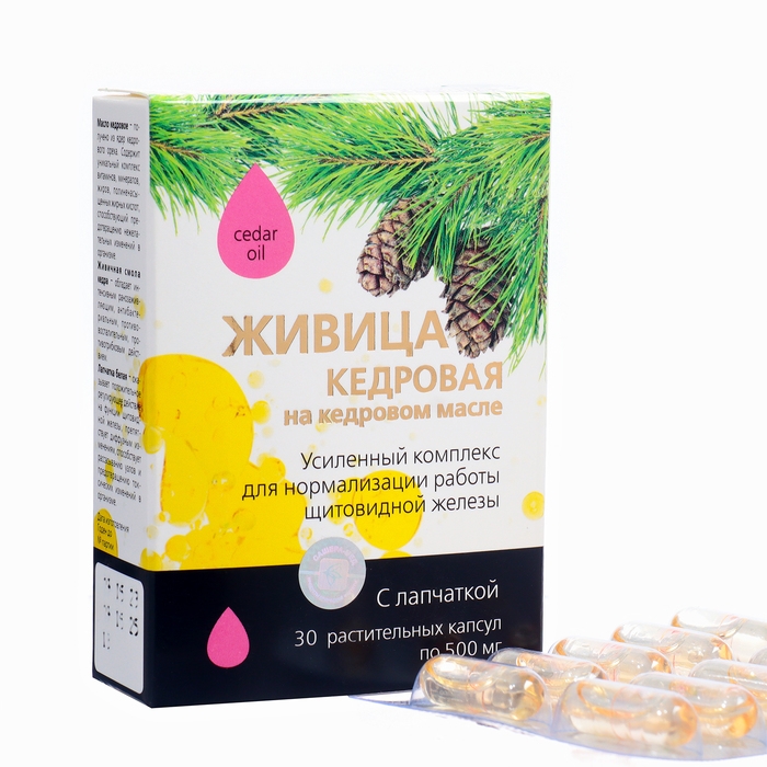 Живица кедровая на кедровом масле с лапчаткой, 30 капсул по 500 мг