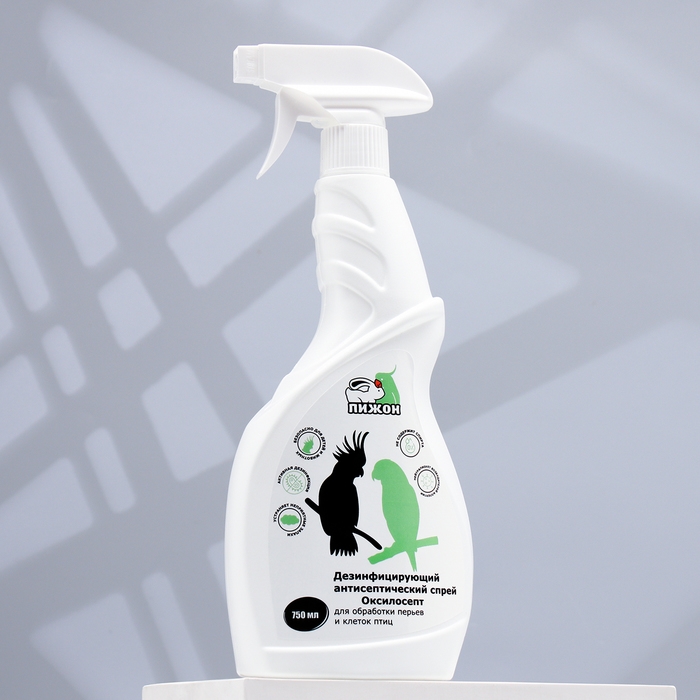 Дезинфицирующий антисептический спрей "Пижон" для обработки перьев и клеток птиц, 750 мл