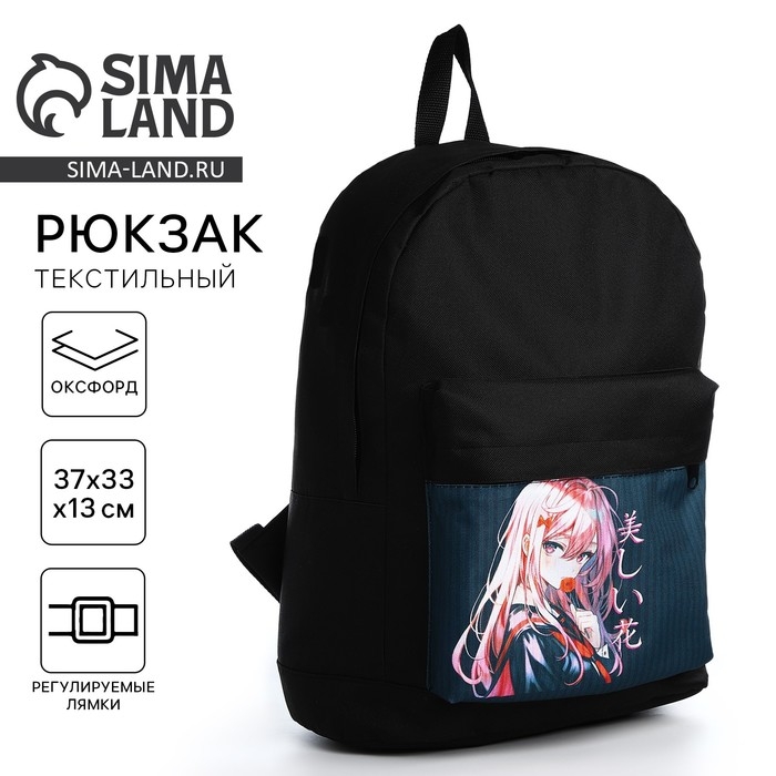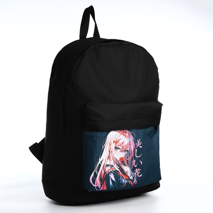 Рюкзак школьный детский для девочки «Аниме», 33х13х37, отд на молнии, н/карман, чёрный