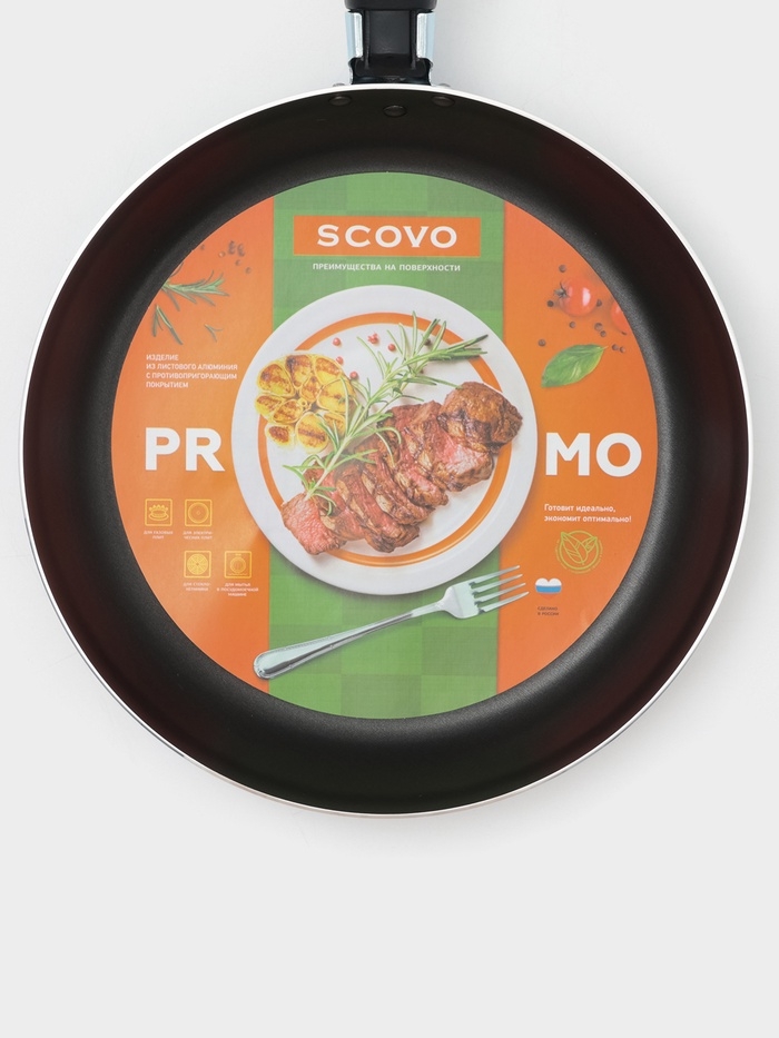 Сковорода подходит для газовых, электрических, стеклокерамических и галогеновых плит.