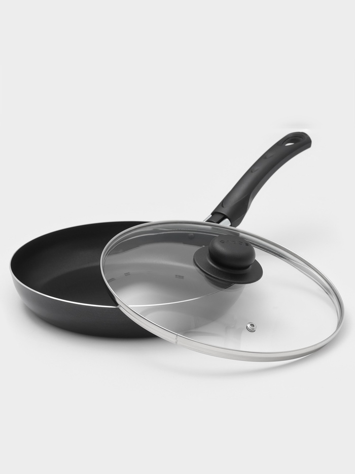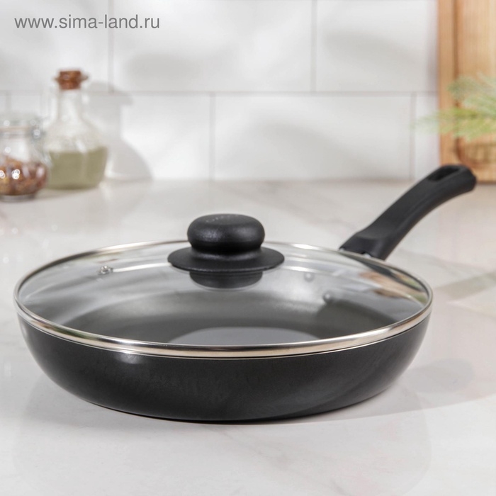 Сковорода Promo, d=24 см, стеклянная крышка, антипригарное покрытие, алюминий, чёрная