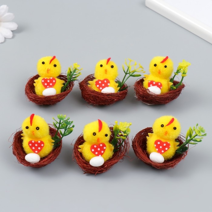 Сувенир пасхальный "Цыпленок с яичком в гнезде" набор 6 шт 5,5х12,5х17 см