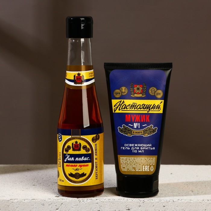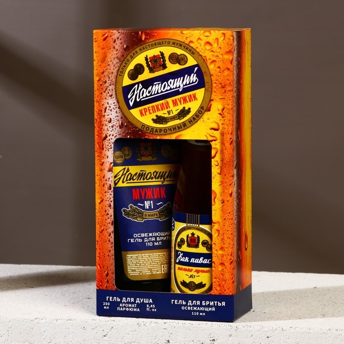 Новогодний подарочный набор косметики «Настоящий», гель для душа во флаконе пиво 250 мл и гель для бритья 110 мл, Новый Год