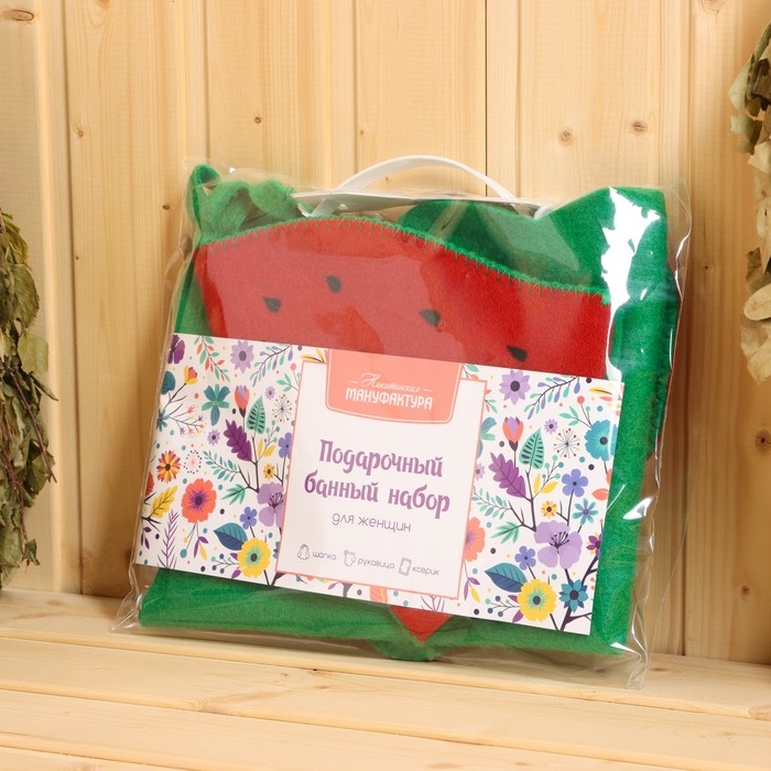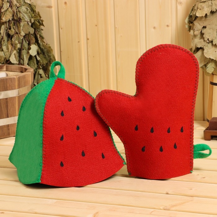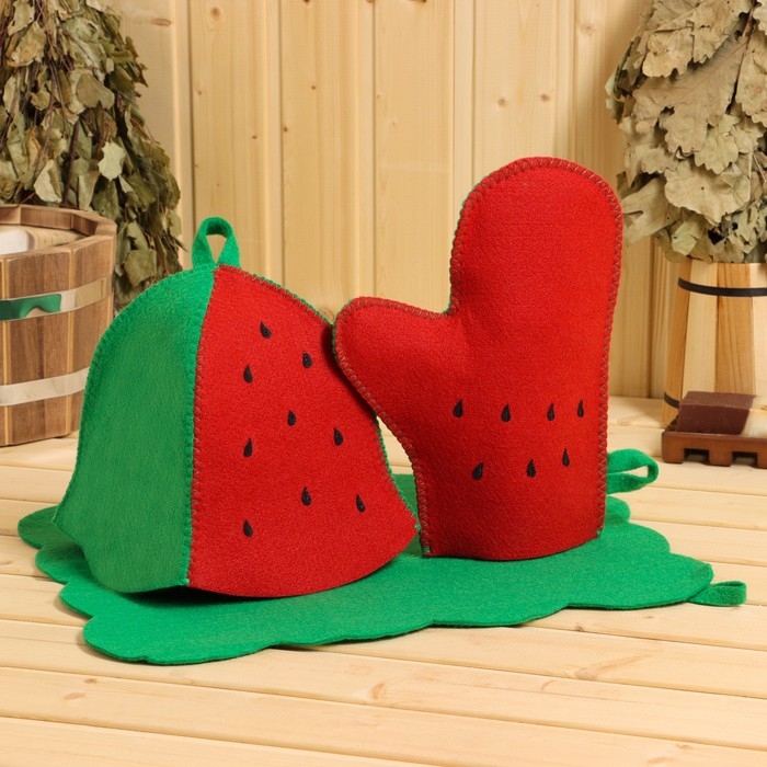 Набор для бани 3 предмета "Арбуз" коврик, рукавица, шапка