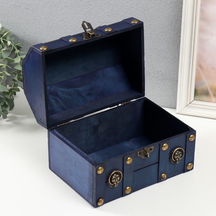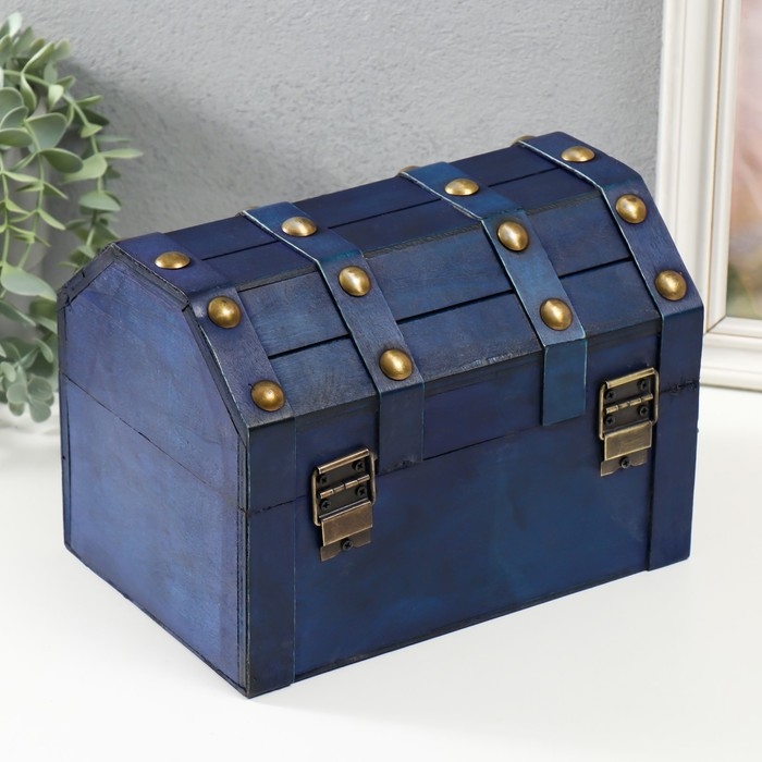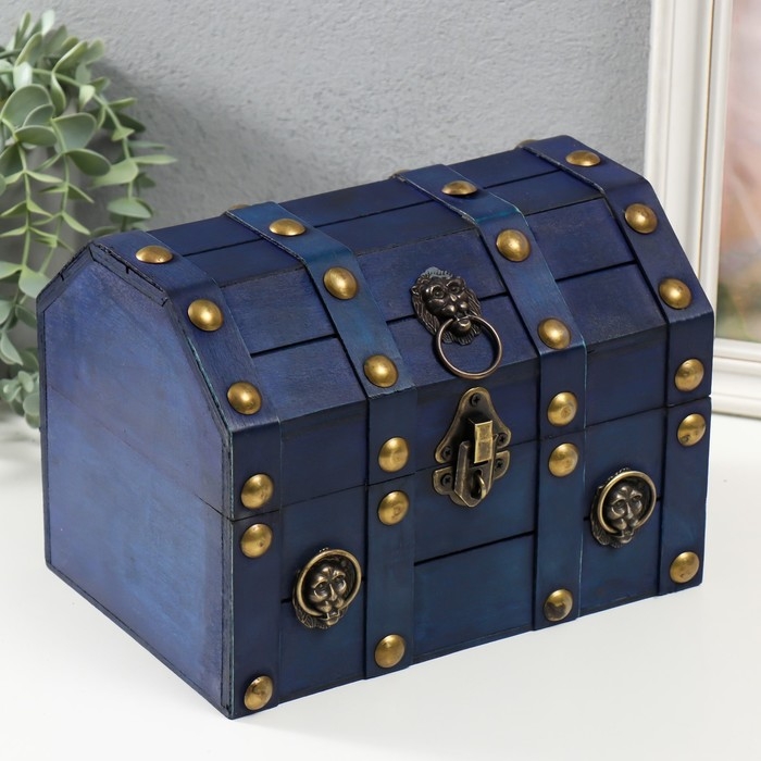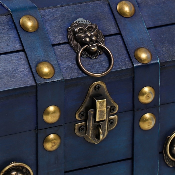 Шкатулка сундучок дерево "Лев. С заклёпками" ярко-синяя 16х15,5х22 см