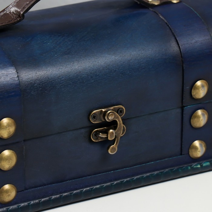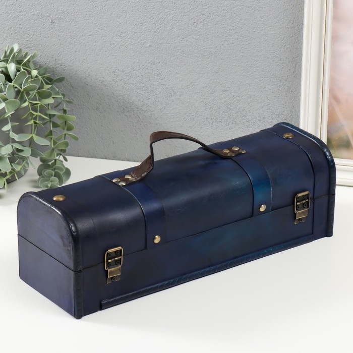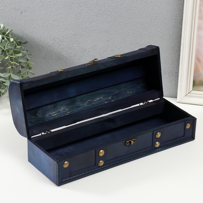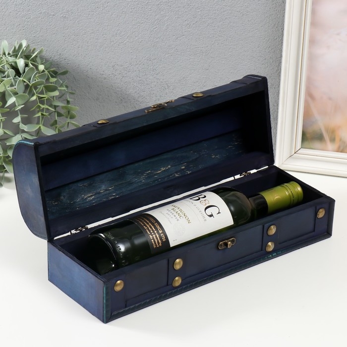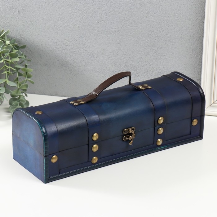 Шкатулка дерево под бутылку "С заклёпками" ярко-синяя 11х34х12,8 см