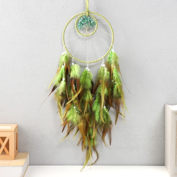 Ловец снов d=15,5 и 7 см "Деревце из камней" зеленый 60х15,5х0,7 см