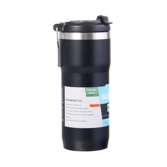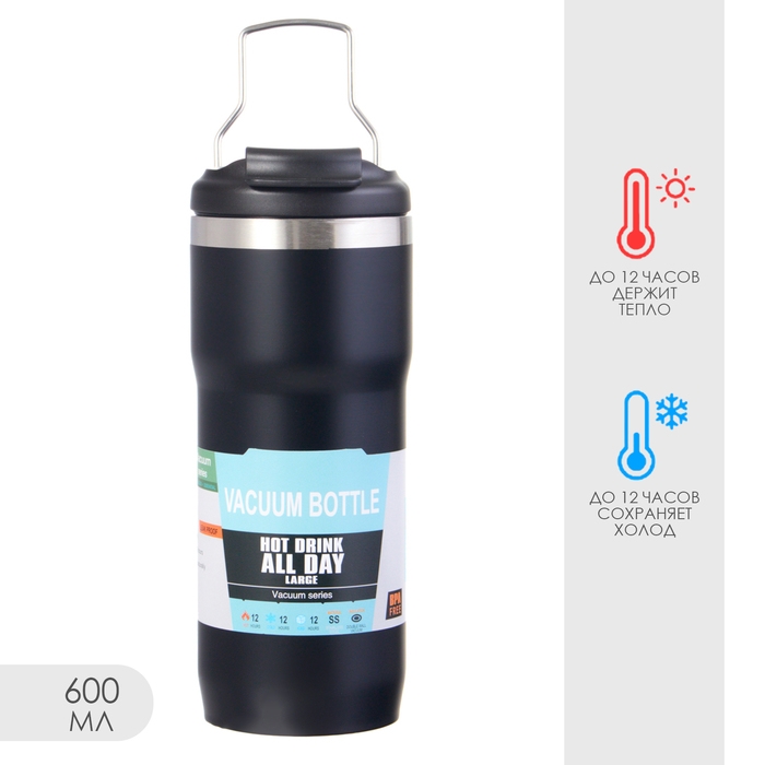 Термокружка, 600 мл, Путешествие, сохраняет тепло до 12 ч, 20.7 х 7.5 см, черная