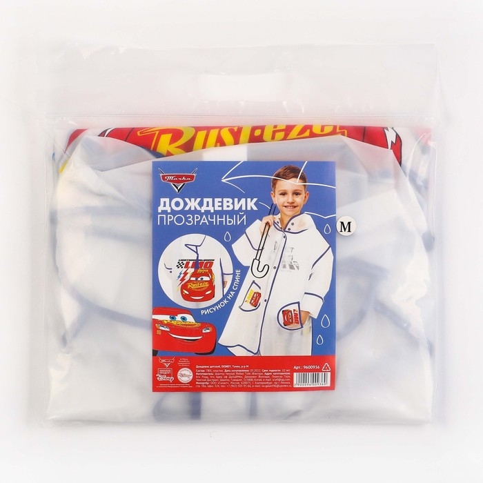 Дождевик детский, размер M, 100-110 см, Тачки