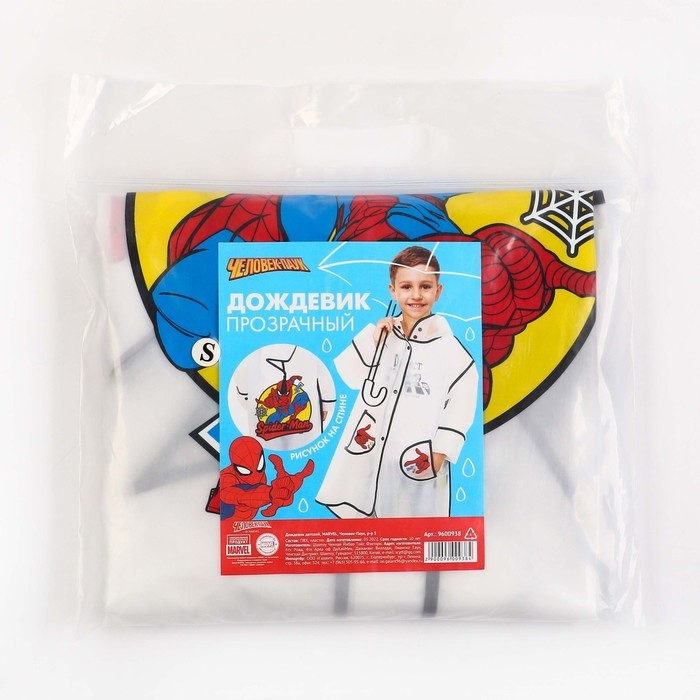 Дождевик детский, размер S, 92-98 см, Человек-Паук