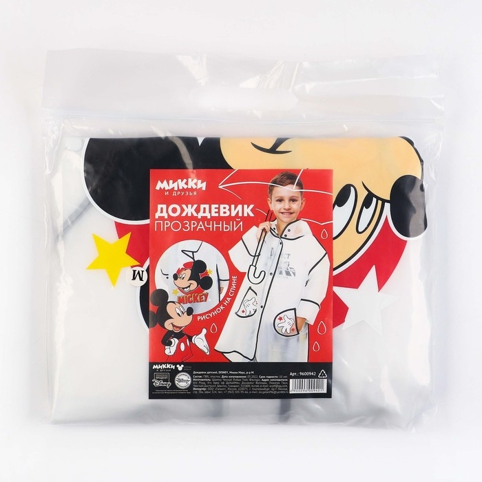 Дождевик детский, размер M, 100-110 см, Микки Маус