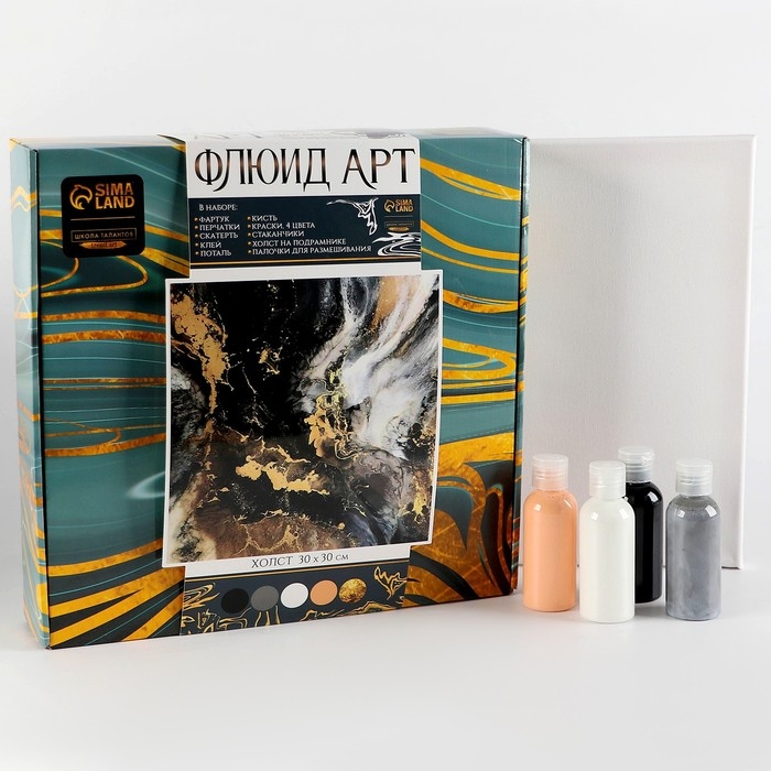 Набор для творчества. Флюид арт. Рисование акрилом на холсте с поталью «Роскошь»