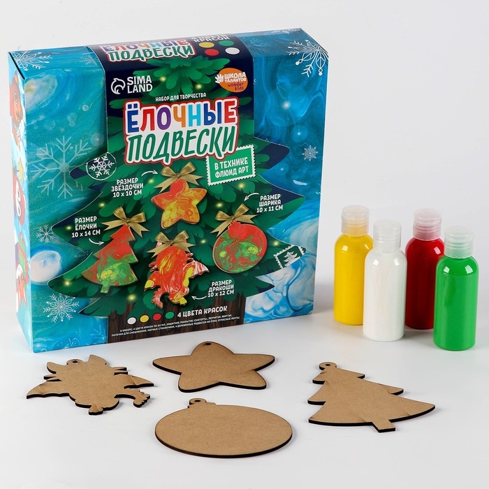Ёлочные деревянные подвески своими руками на новый год «Флюид арт», новогодний набор для творчества