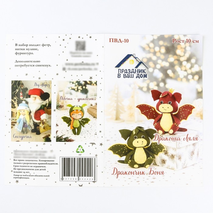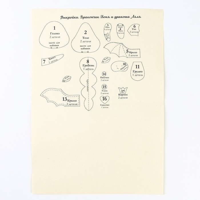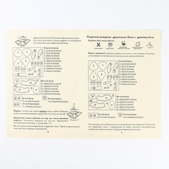 Набор для изготовления текстильной игрушки «Дракончик Боня и дракоша Ляля» рост — 12 см