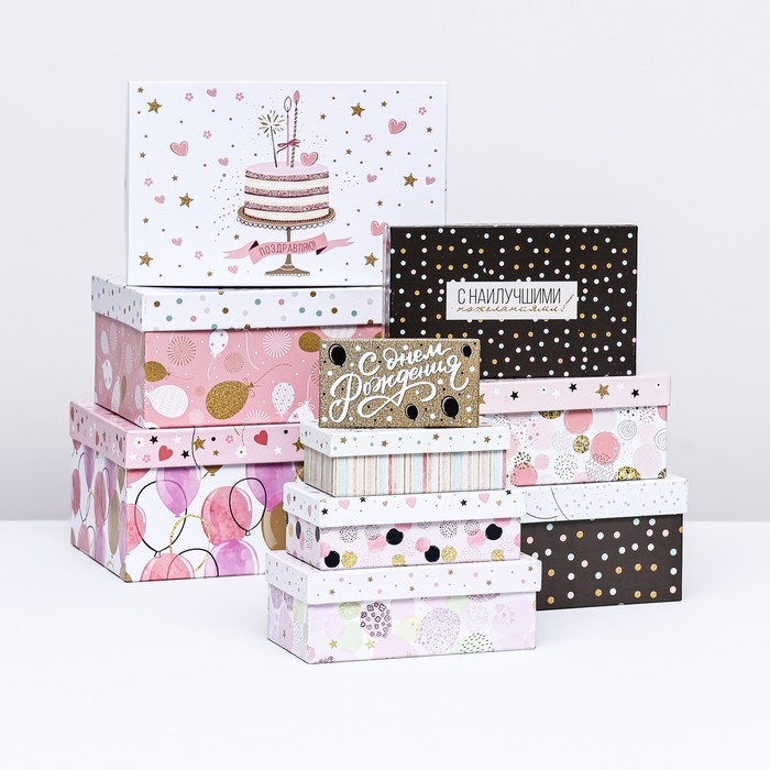 Набор коробок 10 в 1, упаковка подарочная, «Нежный», 12 х 7 х 4 - 32.5 х 20 х 12.5 см
