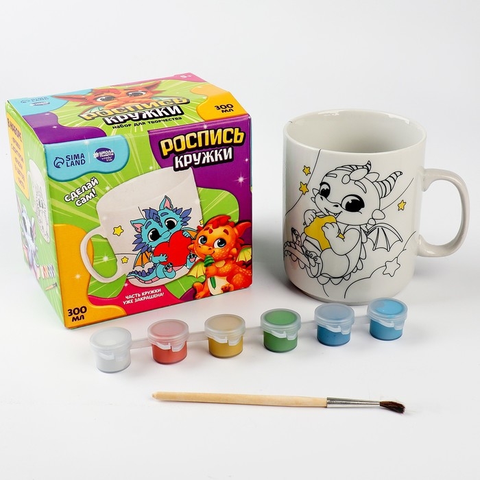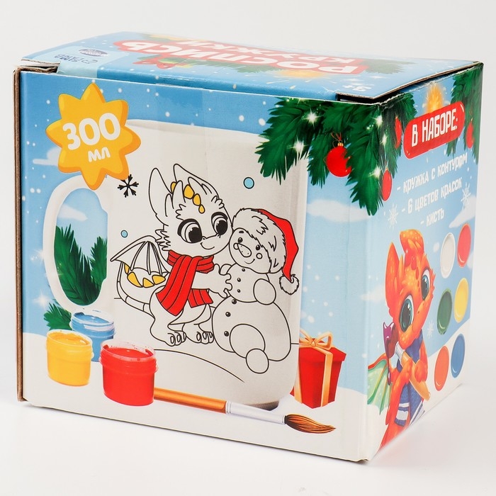 Роспись кружки красками (частичное заполнение) на новый год «Мечты дракончиков», новогодний набор для творчества