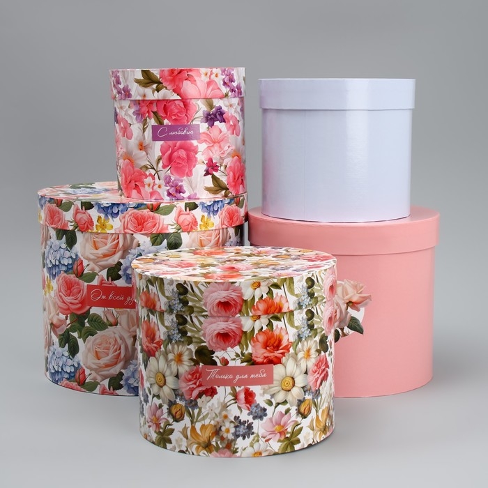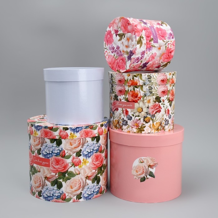 Набор шляпных коробок 5 в 1, упаковка подарочная, «Цветы», 13 х 14 ‒ 19.5 х 22 см
