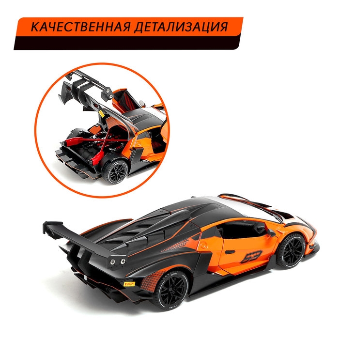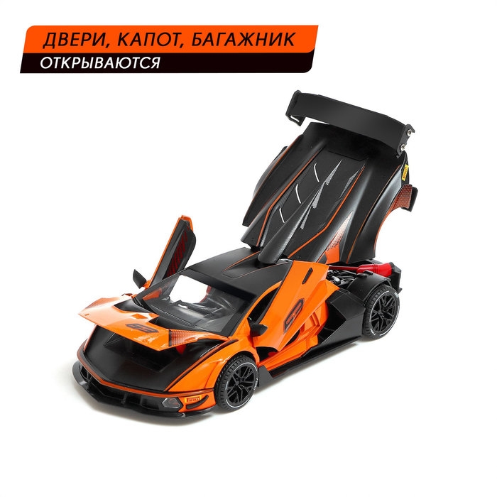 Машина металлическая «Купе», 1:24, открываются двери, капот, багажник, инерция, цвет оранжевый