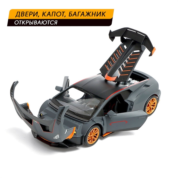 Машина металлическая «Купе», 1:24, открываются двери, капот, багажник, инерция, цвет серый