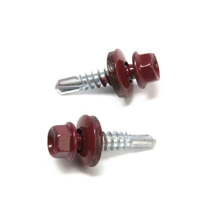 Саморезы кровельные 5,5х25 мм, RAL3005 цвет бордовый, 200 шт.