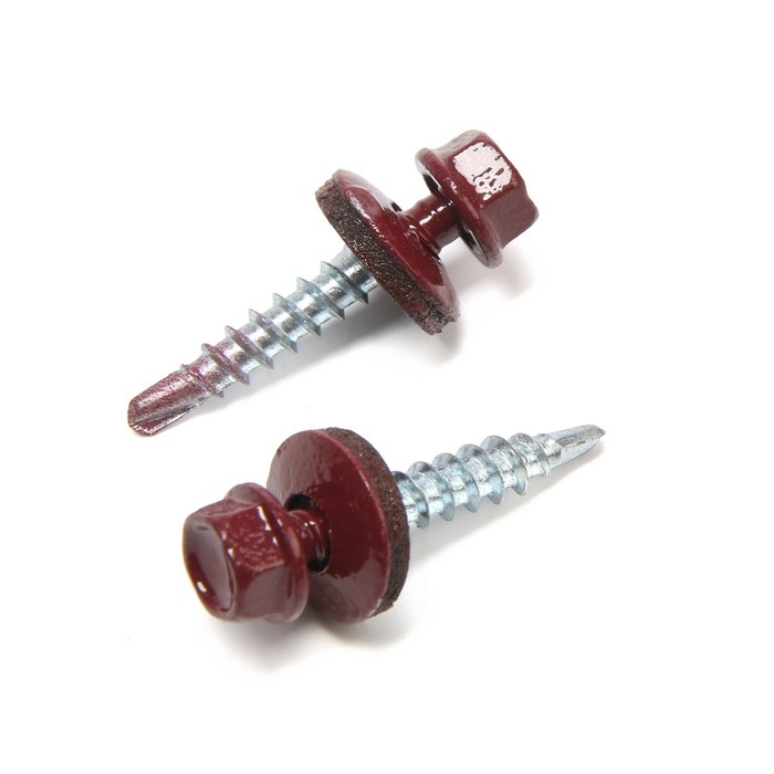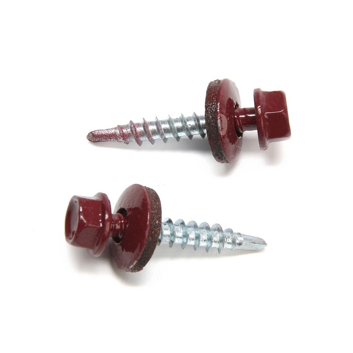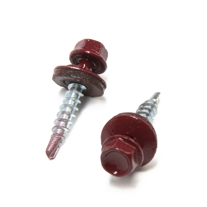 Саморезы кровельные 4,8х30 мм, RAL3005 цвет бордовый, 200 шт.