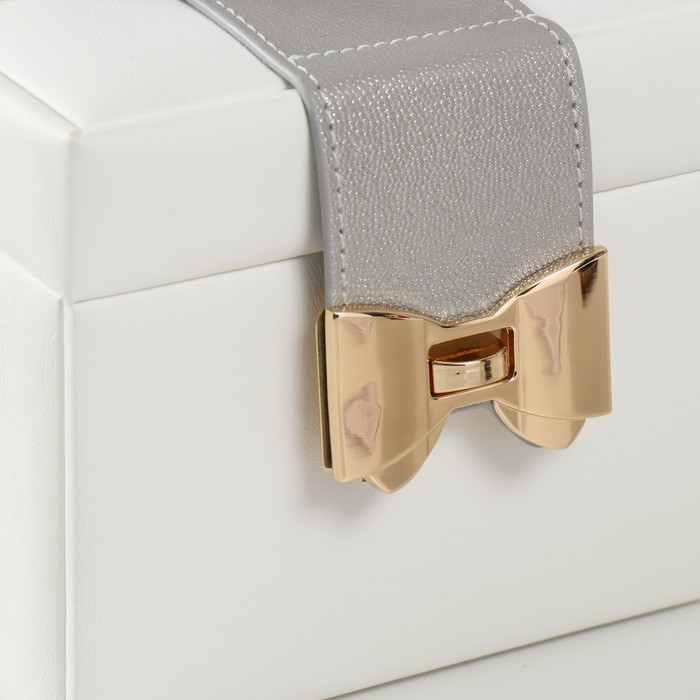 Шкатулка кожзам для украшений "Золотой бантик" серо-белая 15х15х12,7 см