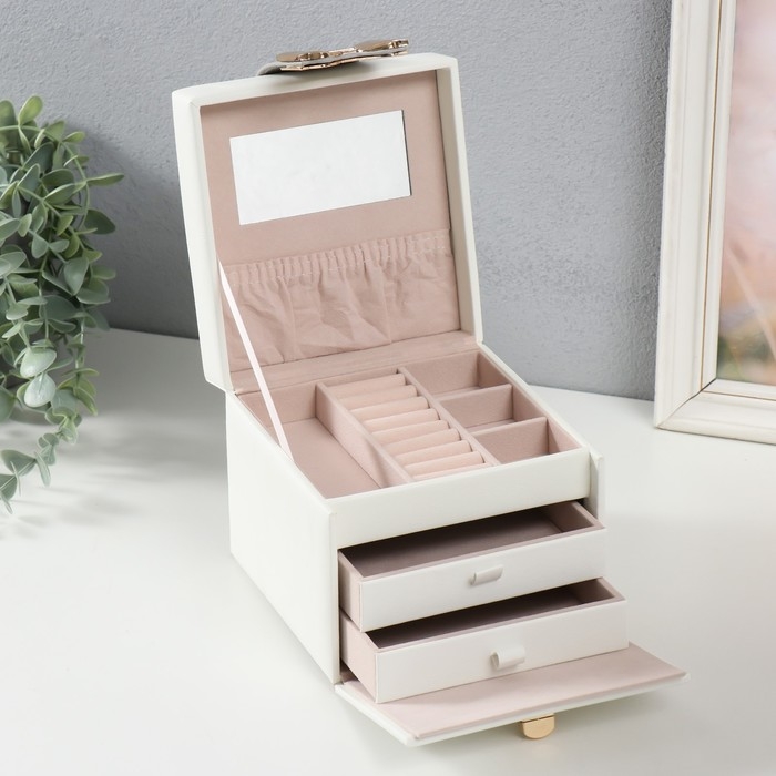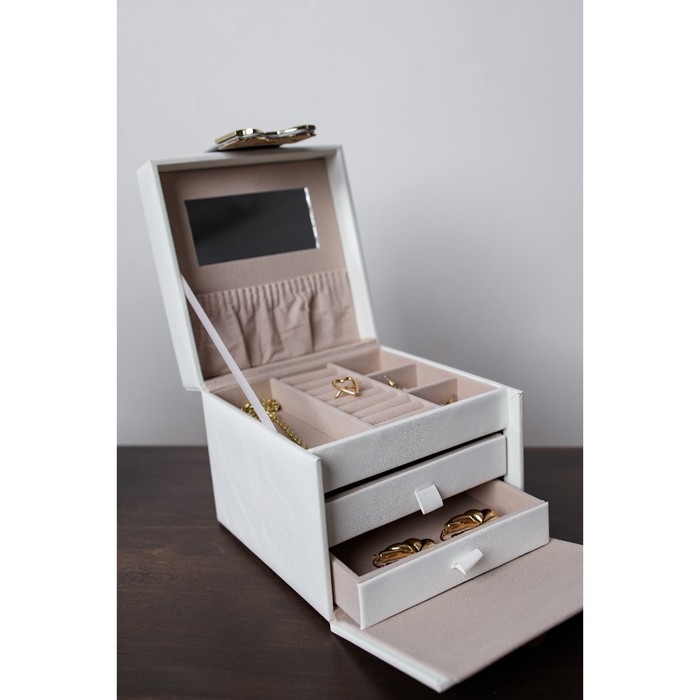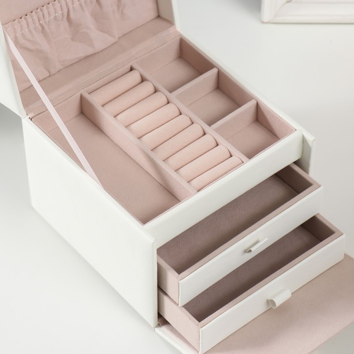 Выдвижные ящики, Для украшений, С внутренней обивкой, С делениями, С замочком, С зеркалом
