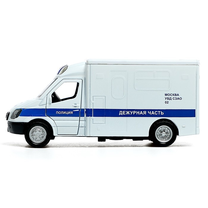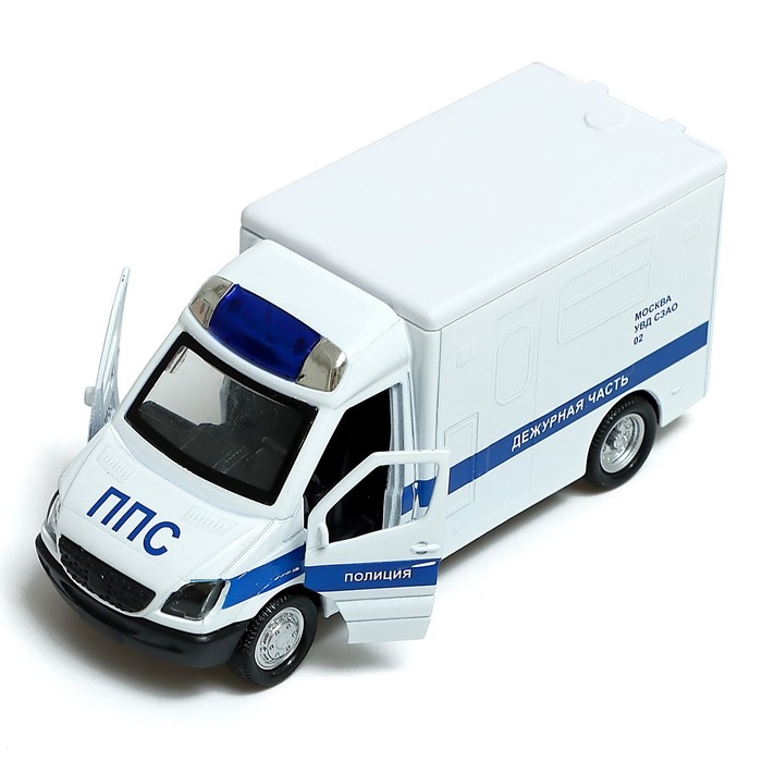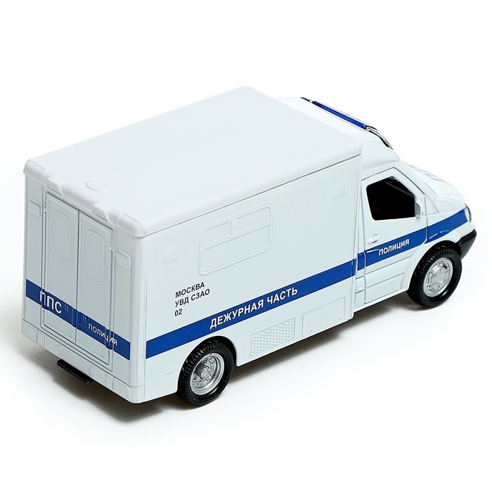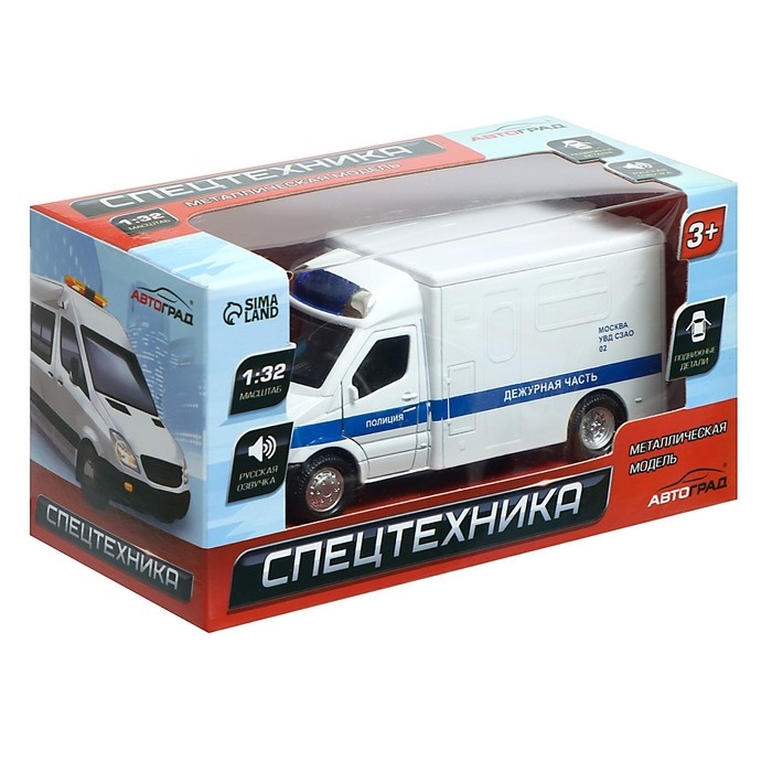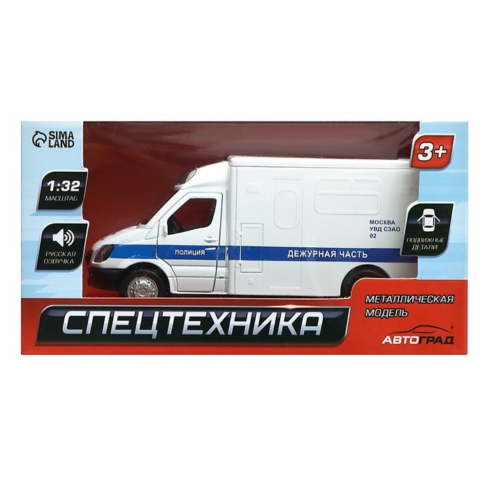 Машина металлическая «Полиция», 1:32, инерционная, световые и звуковые эффекты, русская озвучка, открываются двери, цвет белый