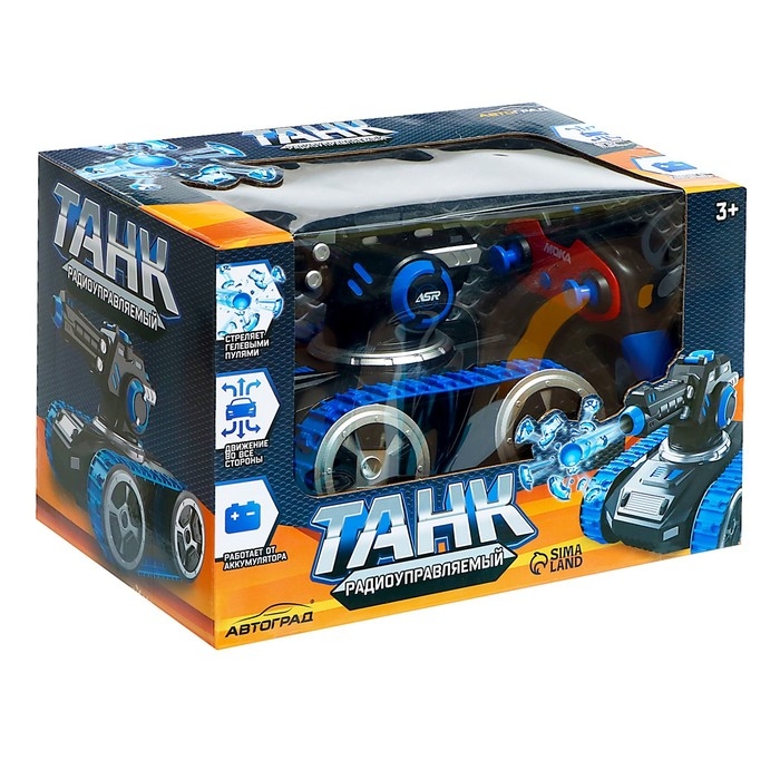 Танк радиоуправляемый MOKA, стреляет гелевыми пулями, цвет синий