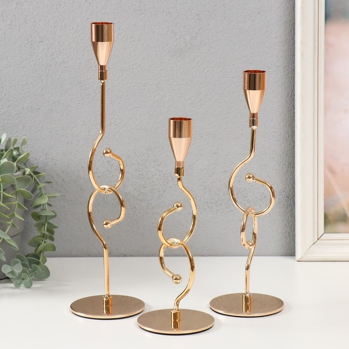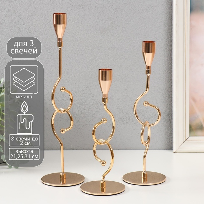 Подсвечник металл "Домиция" набор 3 шт золото d=2см высота 31; 25,4; 21,5 см 8х8х31 см
