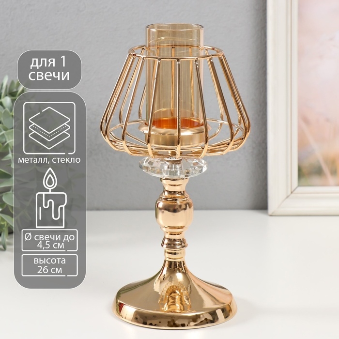 Подсвечник металл "Флавия" золото d=4,5см 13х13х26 см