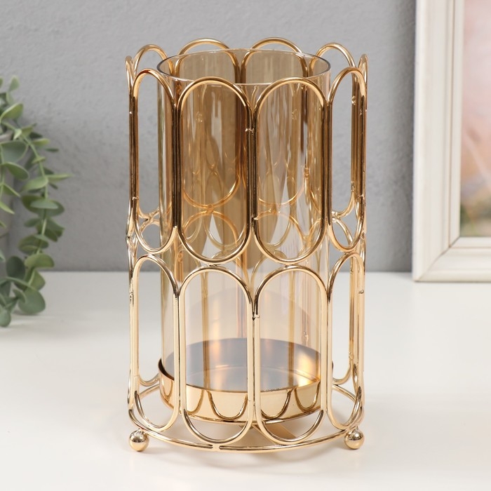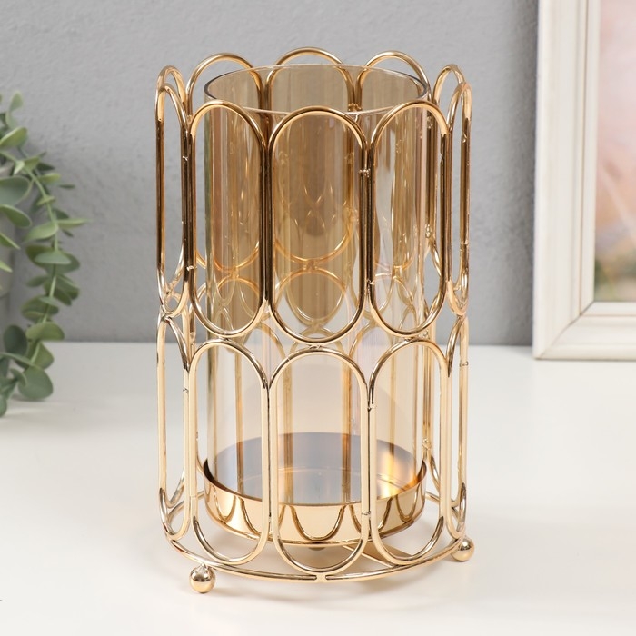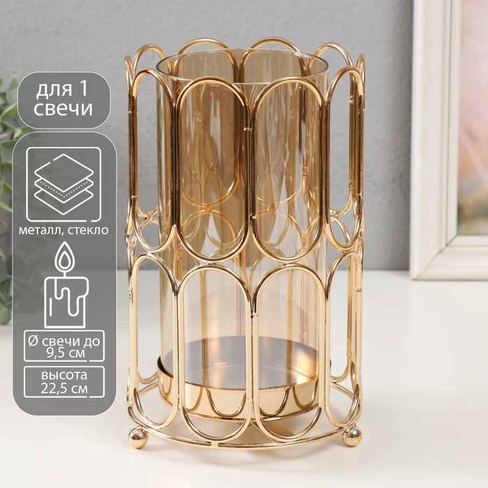 Подсвечник металл "Корнелия" золото d=9,5см 14х14х22,5 см