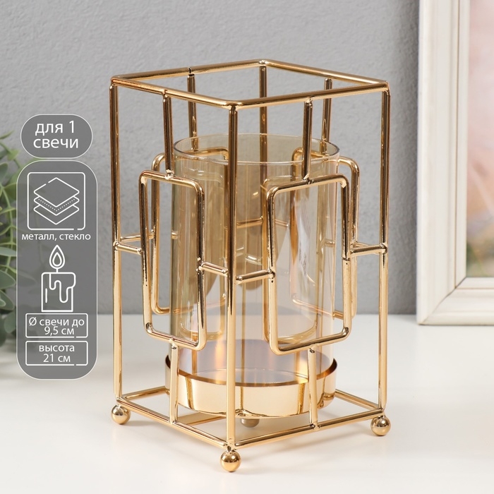 Подсвечник металл "Цинна" золото d=9,5см 12х12х21 см
