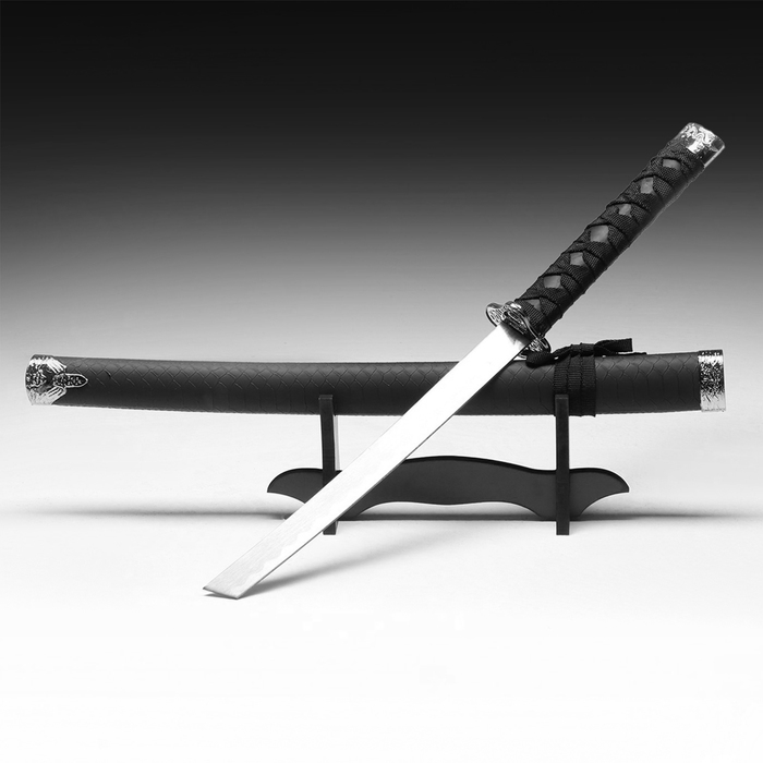 Сувенирное оружие «Катана Тошайо» 70 см, на подставке, ножны под змею, матовая, черная