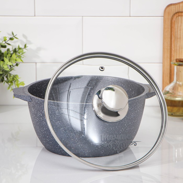 Кастрюля «Гранит», 3 л, антипригарное покрытие, цвет серый
