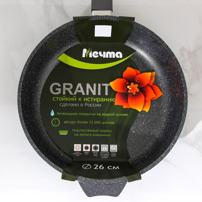 Сковорода «Гранит», d=26 см, пластиковая ручка, антипригарное покрытие, цвет серый