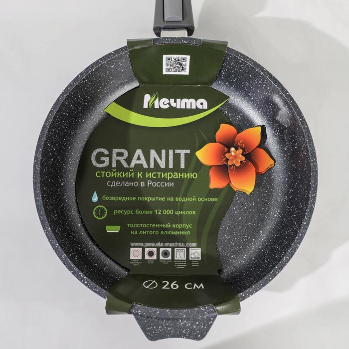 Сковорода «Гранит», d=26 см, съёмная ручка, антипригарное покрытие, цвет серый