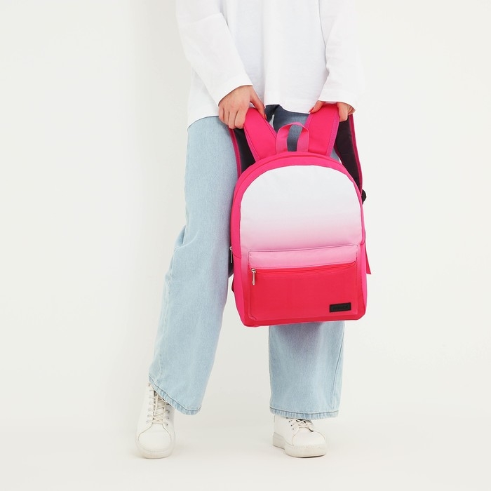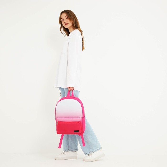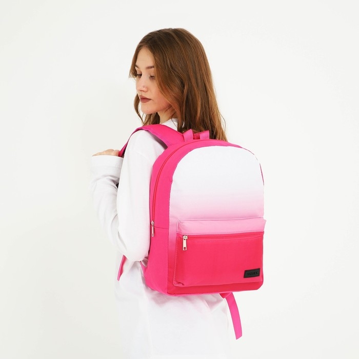 Рюкзак школьный текстильный с белым градиентом, 38х29х11 см, цвет розовый, отдел на молнии