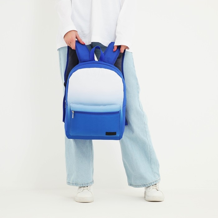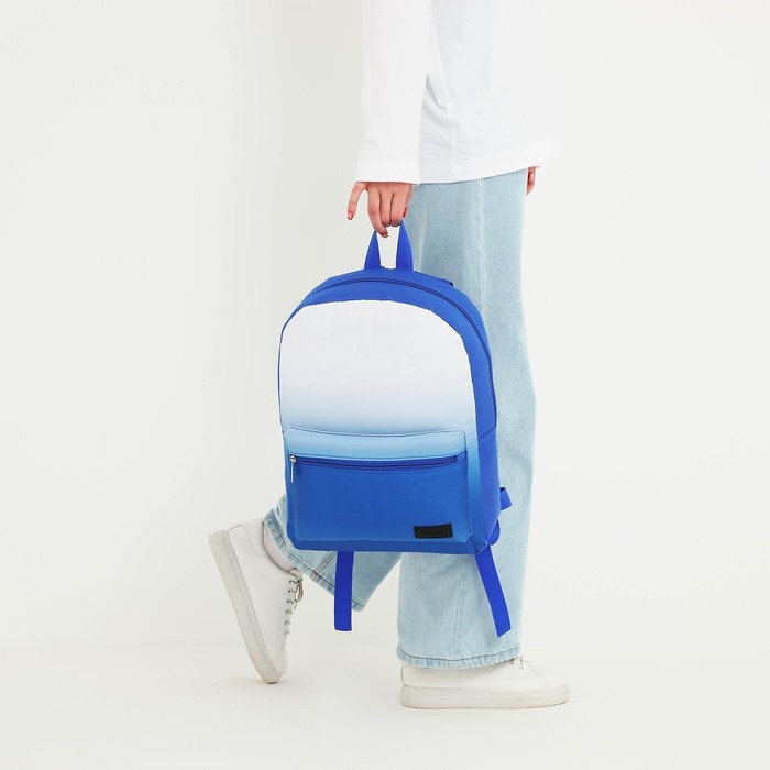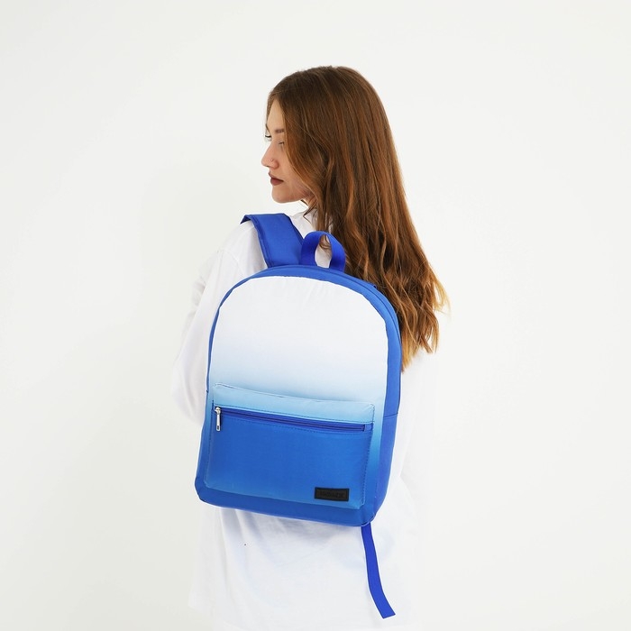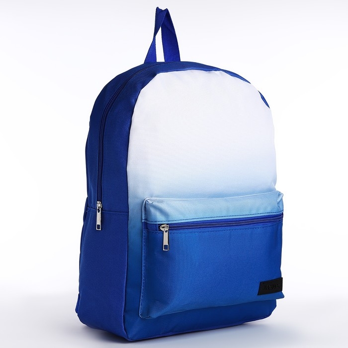 Рюкзак школьный текстильный с белым градиентом, 38х29х11 см, цвет синий, отдел на молнии