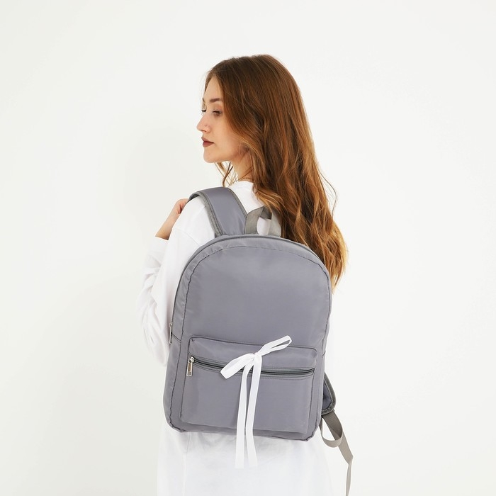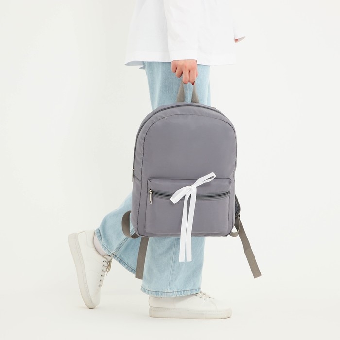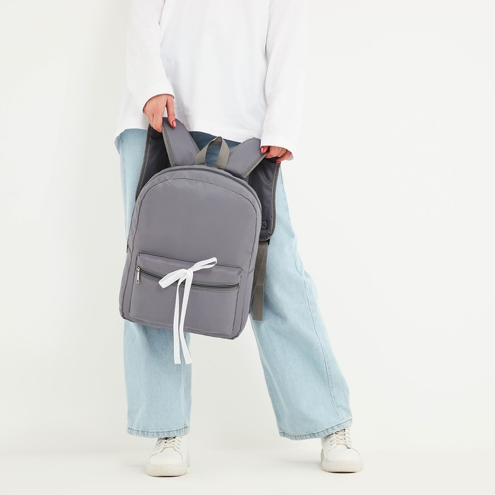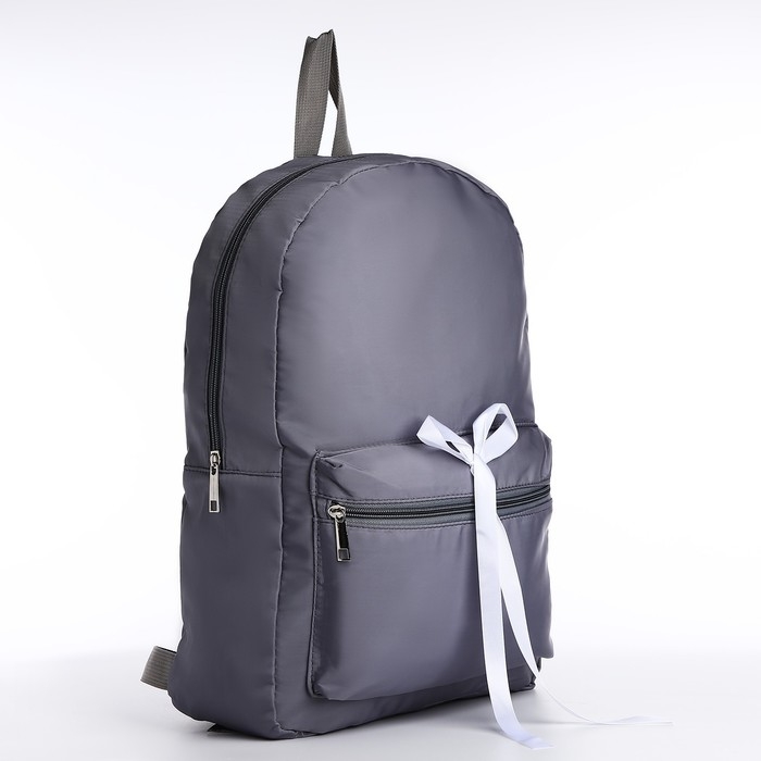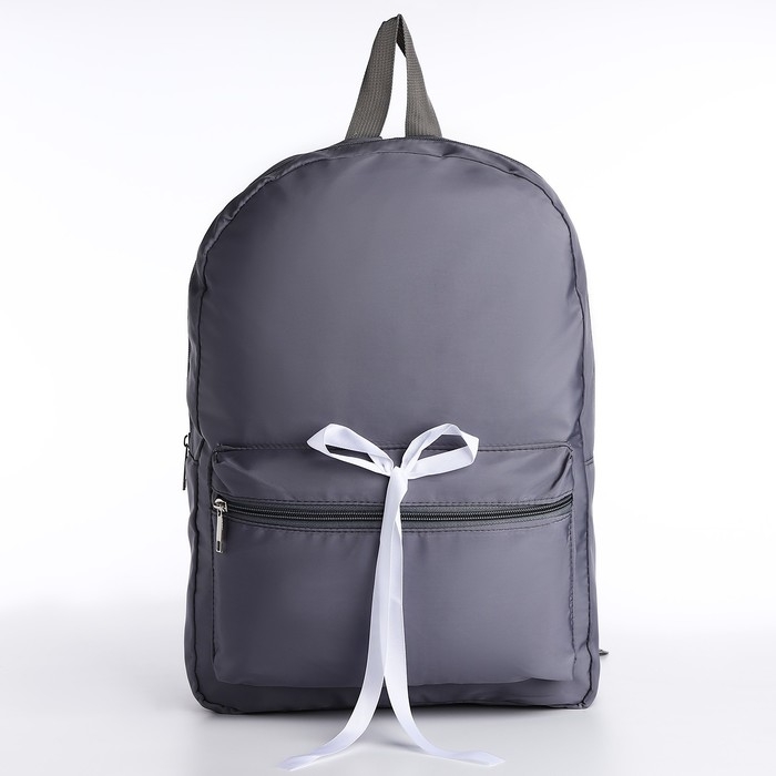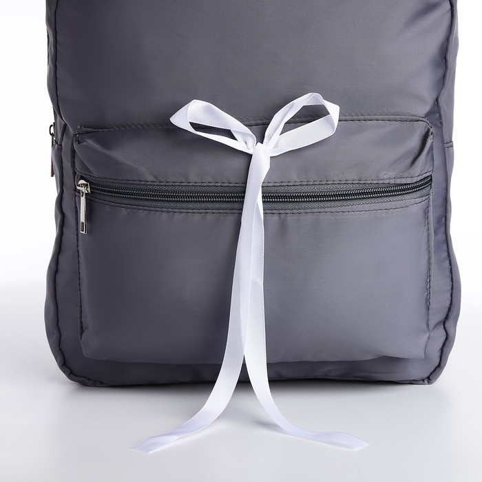 Рюкзак школьный текстильный с белой лентой, 38х29х11 см, цвет серый, отдел на молнии