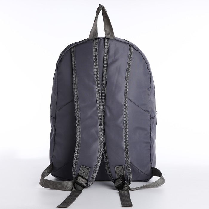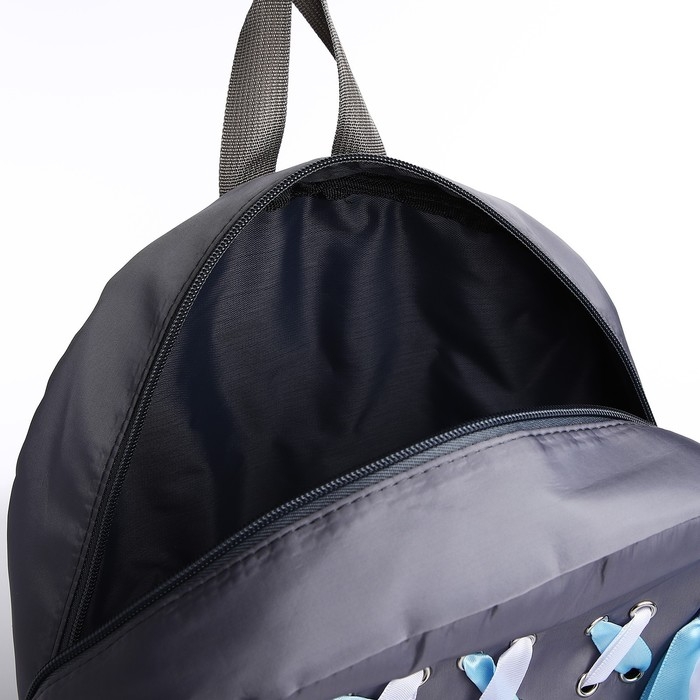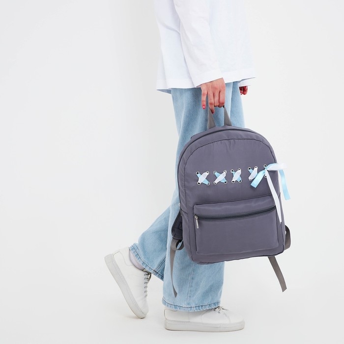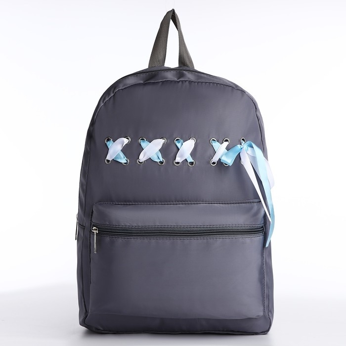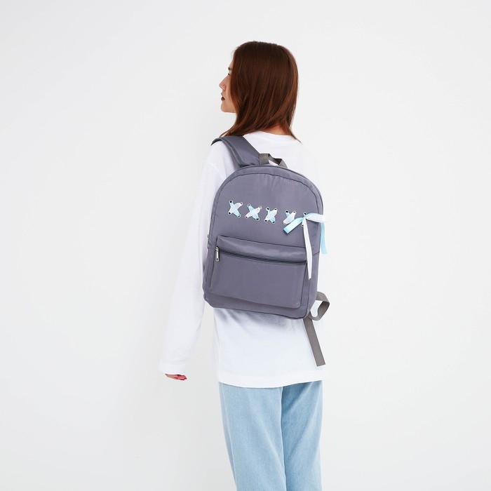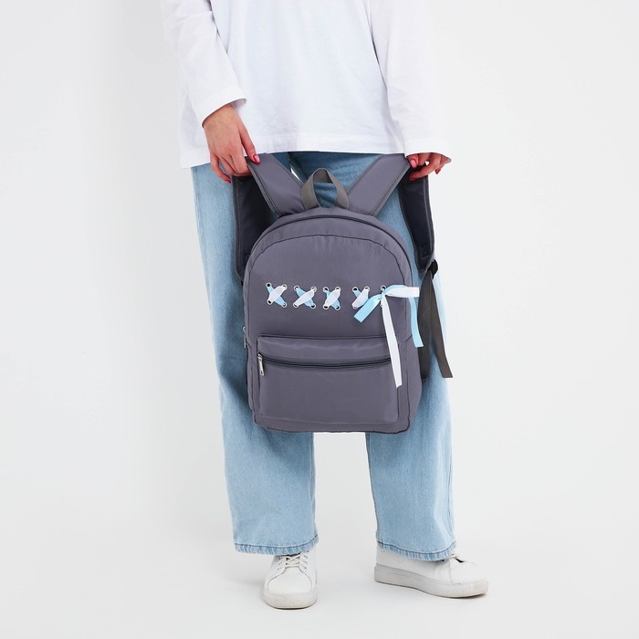 Рюкзак школьный текстильный с лентами, 38х29х11 см, цвет серый, отдел на молнии