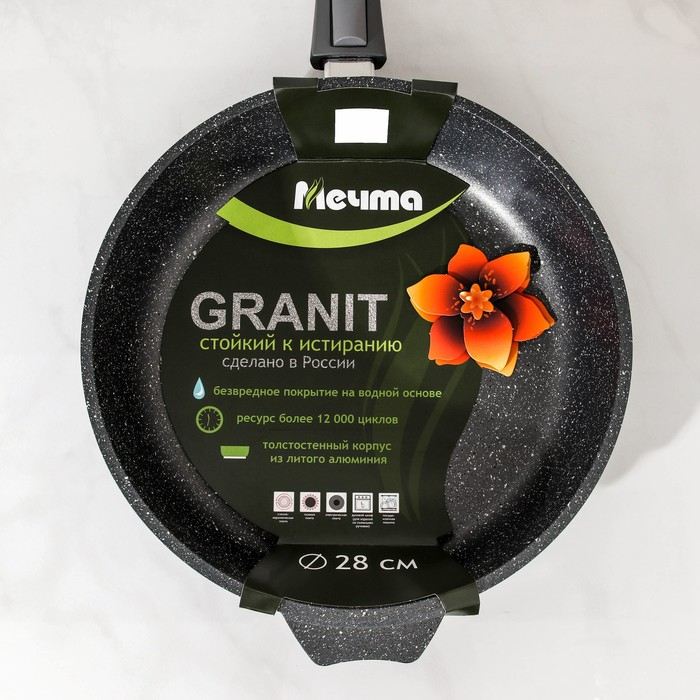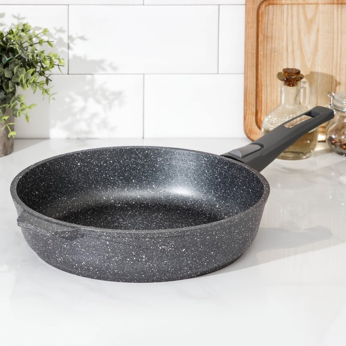 Сковорода «Гранит», d=28 см, съёмная ручка, антипригарное покрытие, цвет серый