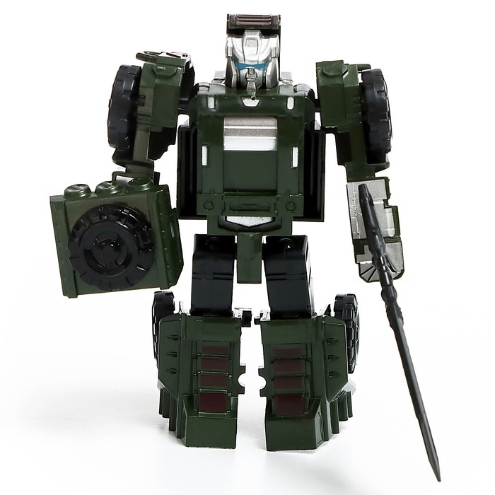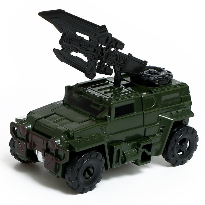 Робот «Бронемашина» уже несётся спасать мир от инопланетных захватчиков! Он вмиг сможет домчаться до врага благодаря трансформации в мощный внедорожник, а, приняв облик устрашающего киборга, «Бронемашина» победит любого противника! Робот, оснащённый оружием, станет любимой игрушкой малыша. С «Бронемашиной» можно играть дома и брать с собой на прогулку. Ребёнок сможет не только увлекательно провести время за игрой, но также, придумывать новые сюжеты, развить свою фантазию и воображение. А яркий дизайн и проработанные детали сделают игру динамичнее и интереснее.